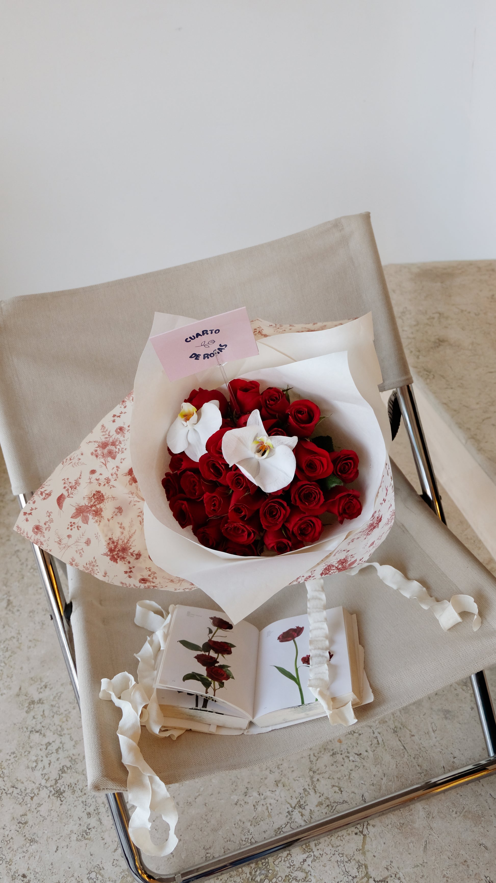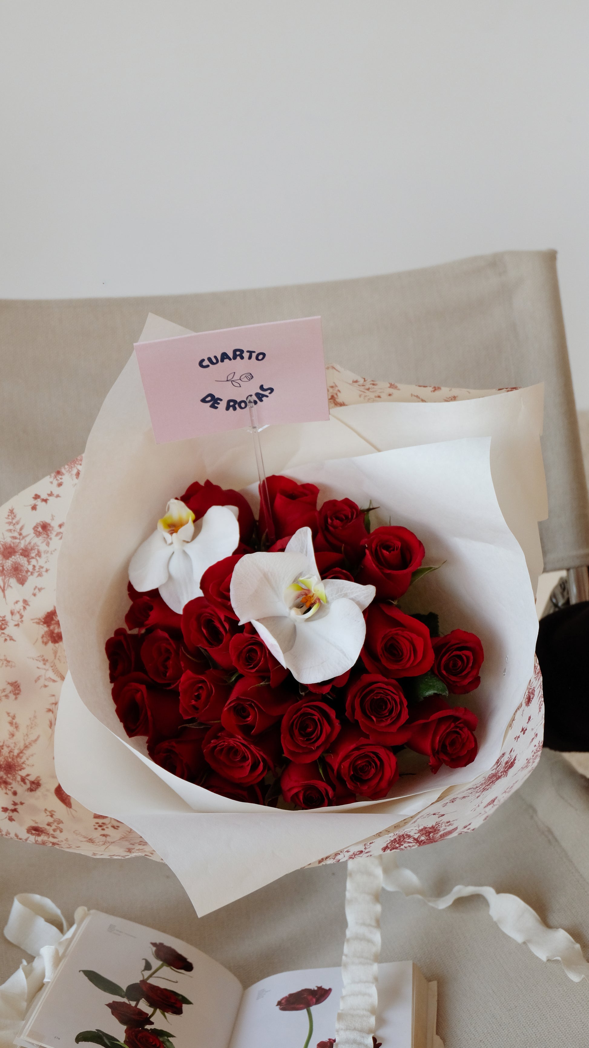 Ramo de 50 rosas rojas + 2 Orquídeas o 2 Anturios (a tu elección)