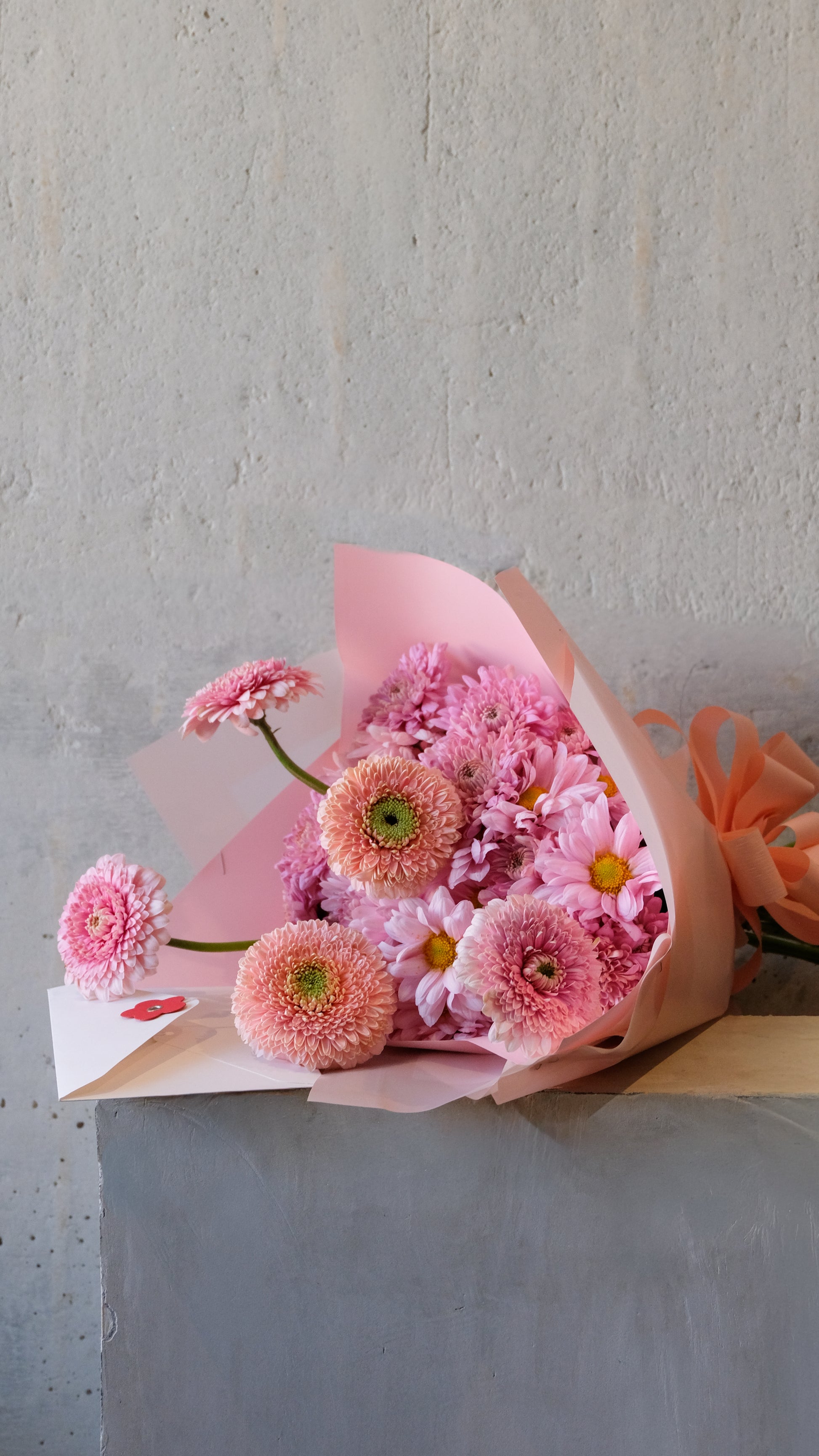 Ramo de 5 gerberas + margaritas en tonos sweet.